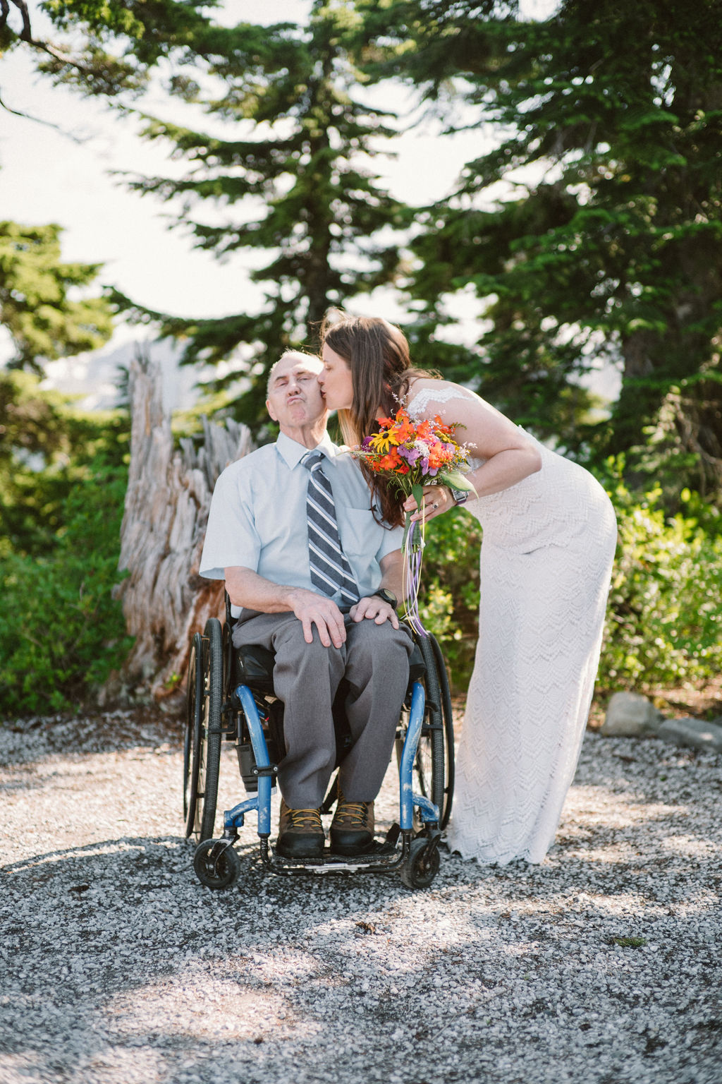 We chose Artist Point for our wedding location because we wanted a beautiful wilderness setting that was located close to my family in Whatcom County and was also wheelchair accessible. Artist Point also holds many special memories for me because I’ve been there many times over the years, so it was a no-brainer for us.
