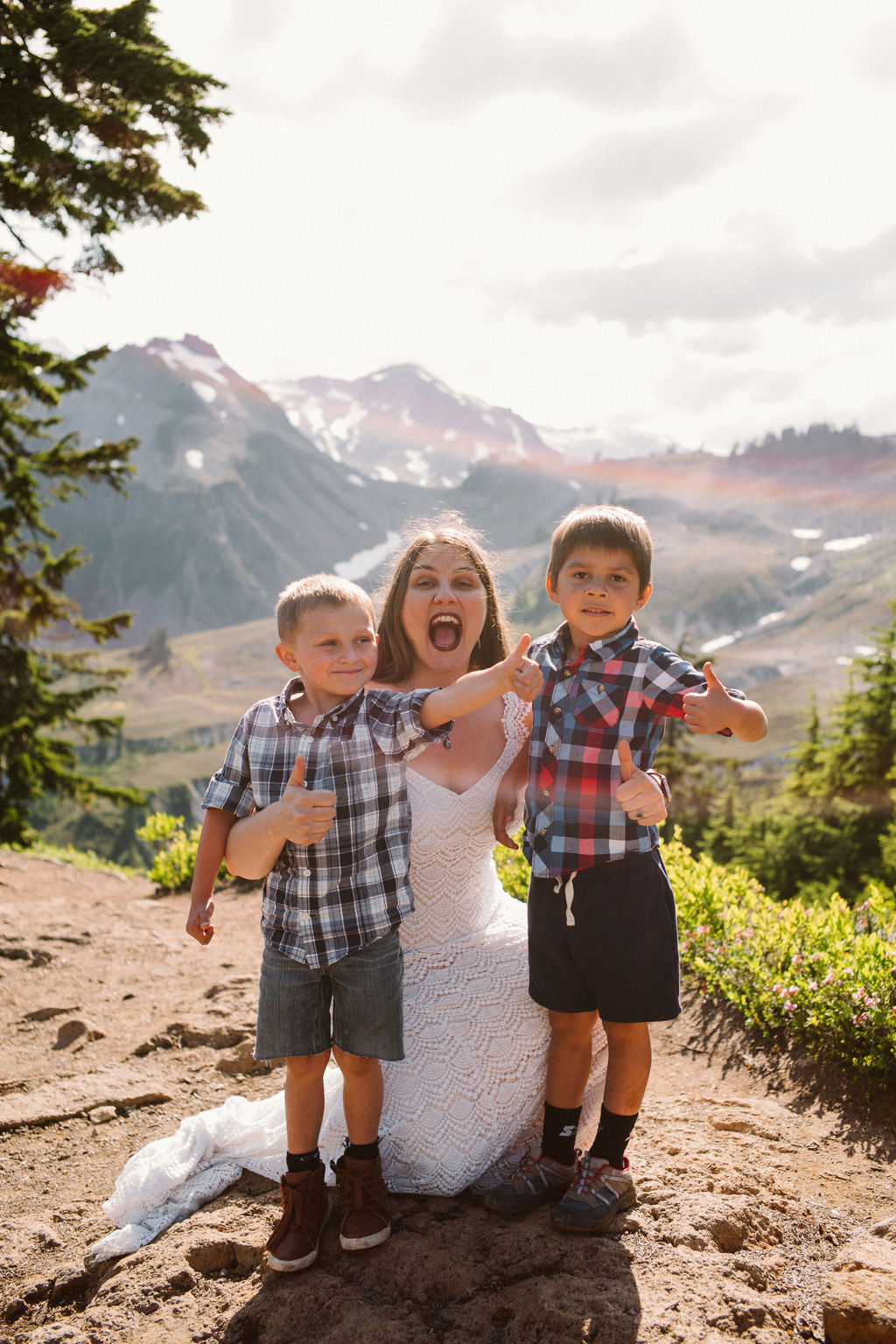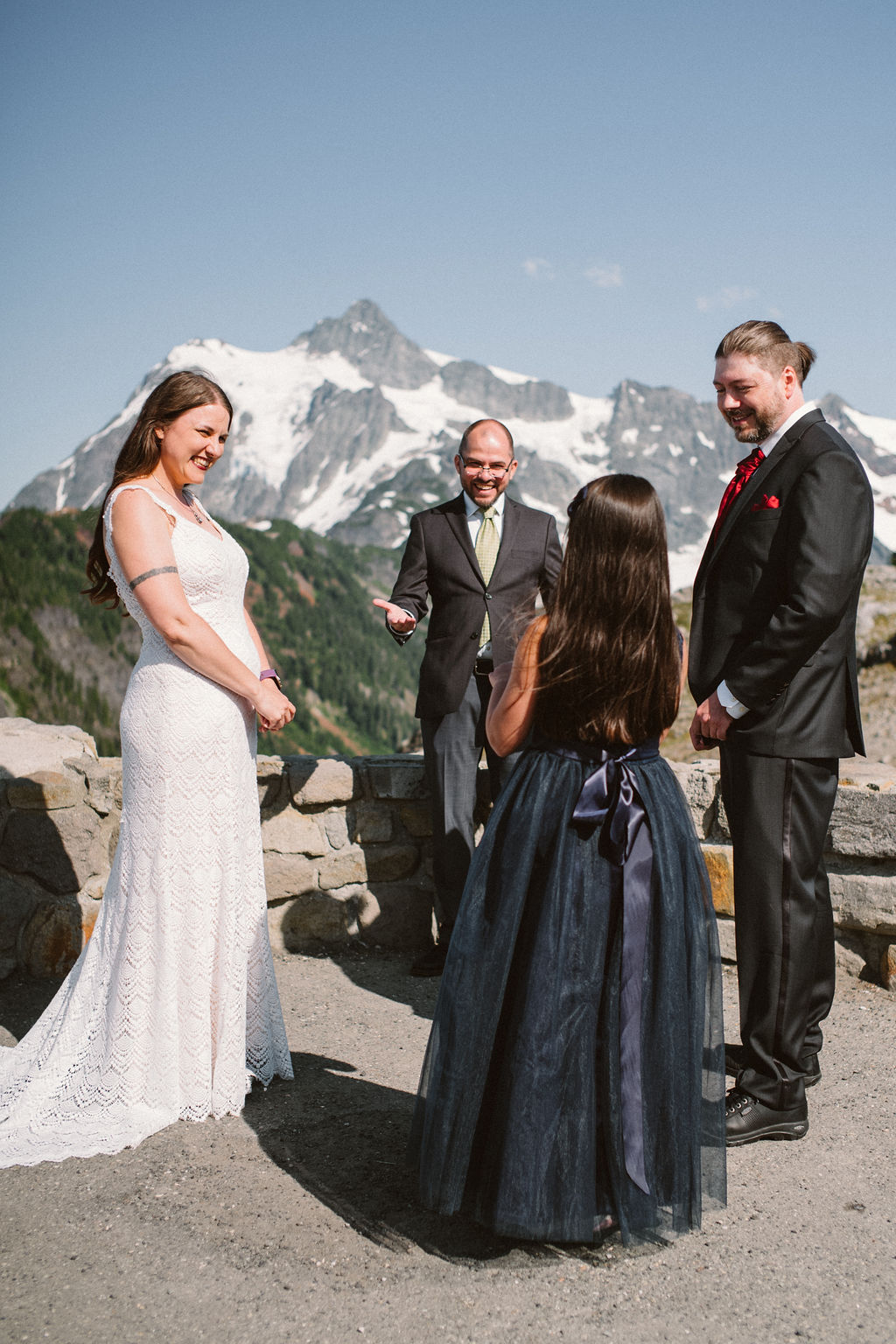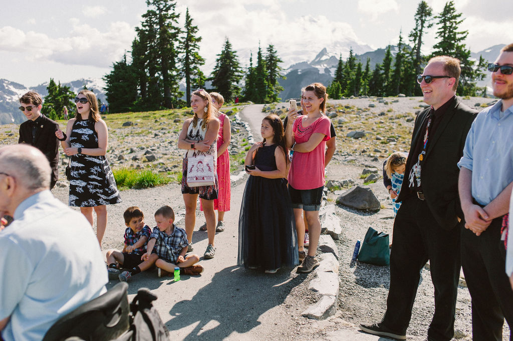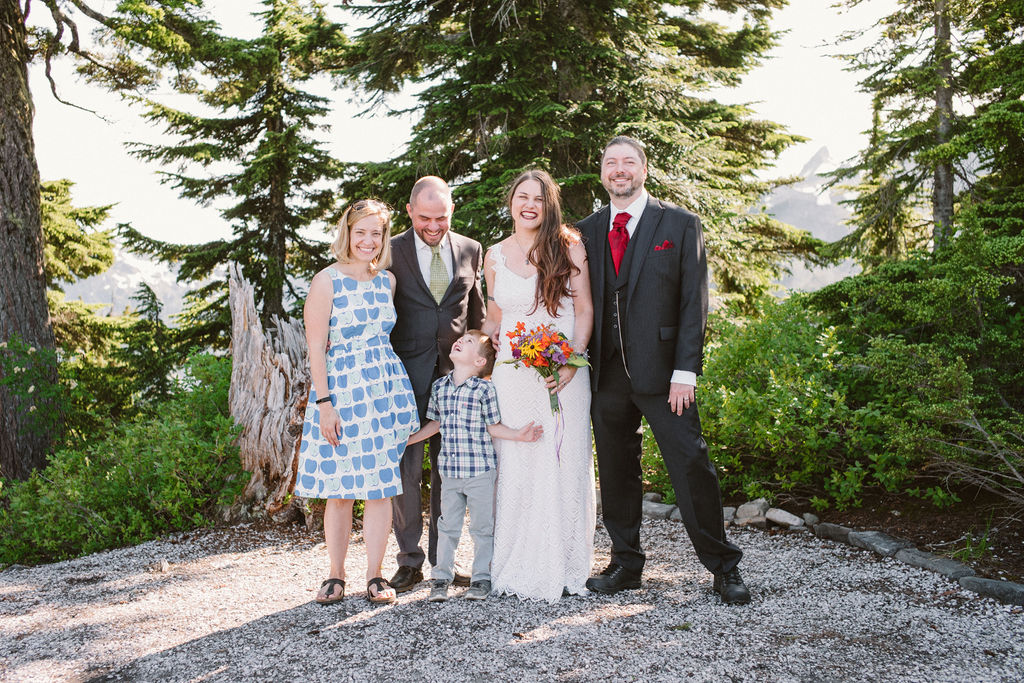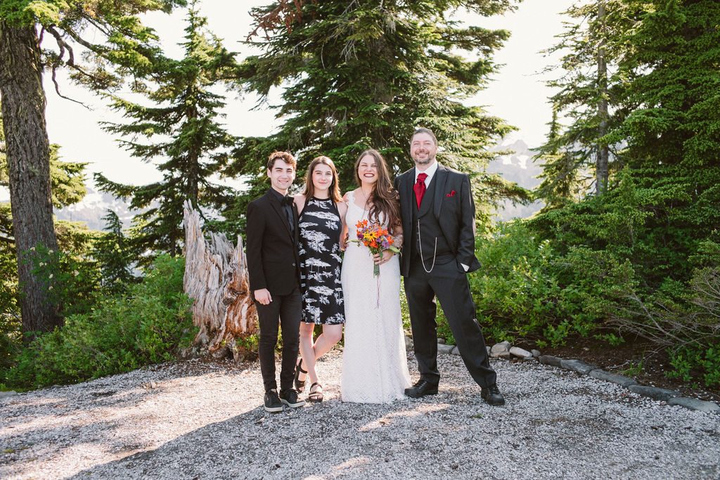 We kept the wedding short and sweet. My brother Jonathan officiated our simple ceremony, with Mt. Shuksan, Mt. Baker and my family as witnesses.  We could not drop flower petals on the ground, since Artist Point is a wilderness area, so the kids blew bubbles. Ava presented us with our rings. We said our vows.