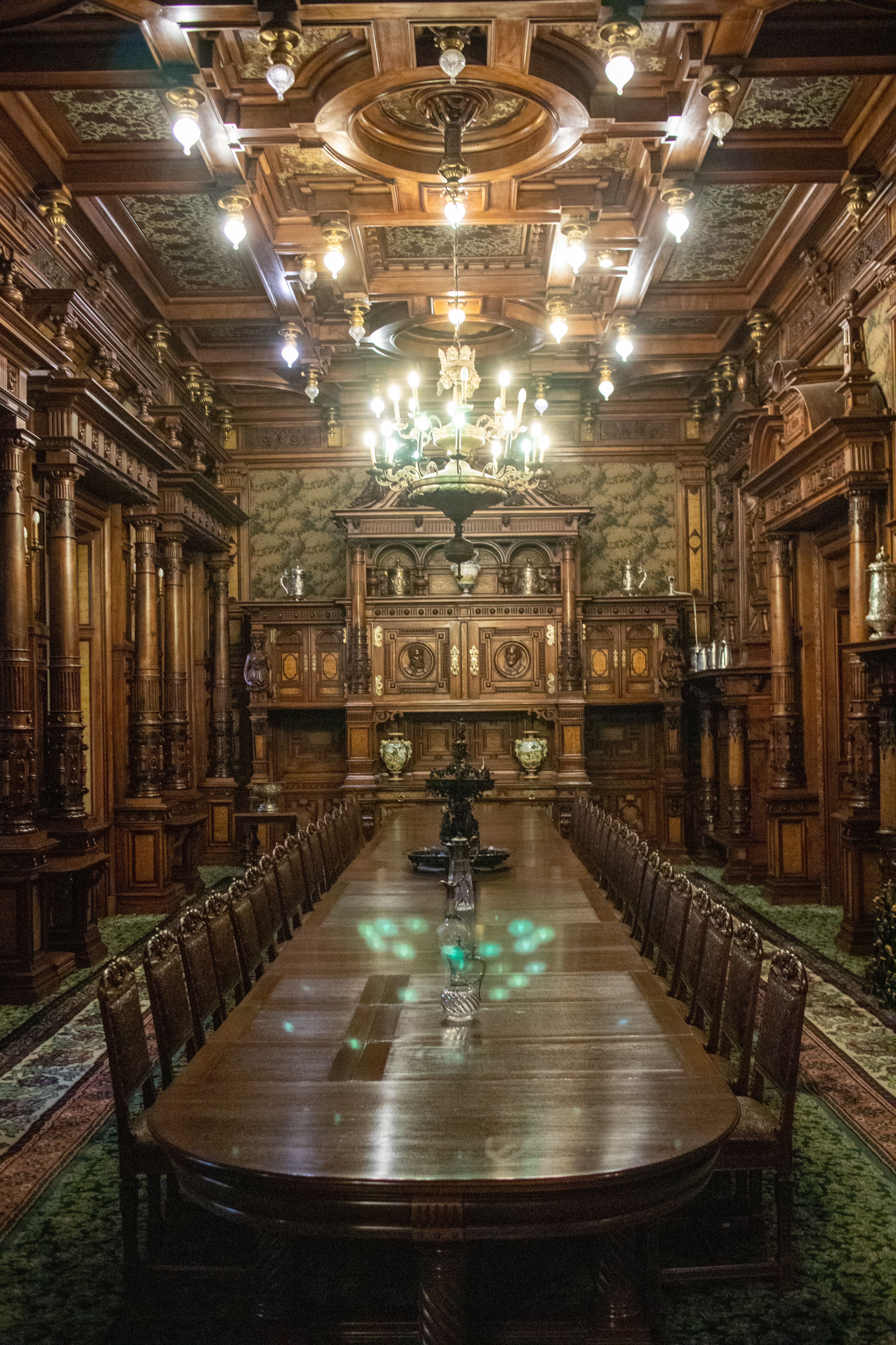Our first stop of the day was PeleÈ™ Castle near the village of Sinaia. Located along a medieval trading route in the Carpathian Mountains, PeleÈ™ Castle was originally commissioned by King Carol I of Romania as his new summer residence. Constructed in a Neo-Renaissance style beginning in 1873, the castle boasts a 3,200-square-meter (34,000 sq ft) floor plan with over 170 rooms.